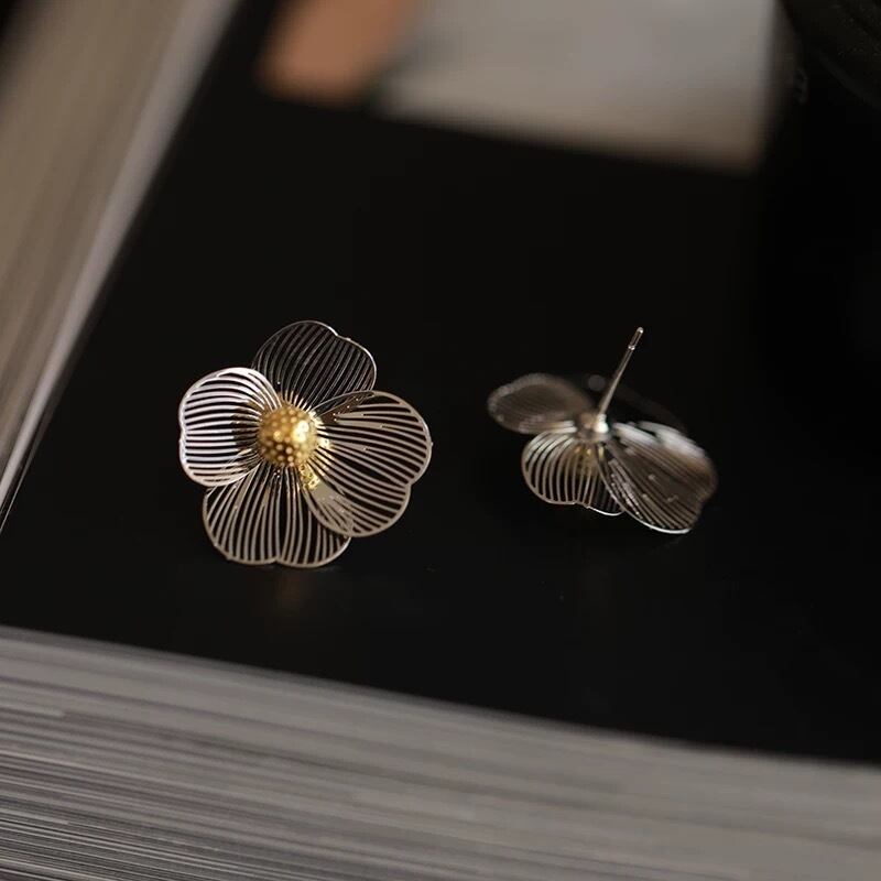 \ 上品で繊細な印象を添える、透かしフラワーピアス /